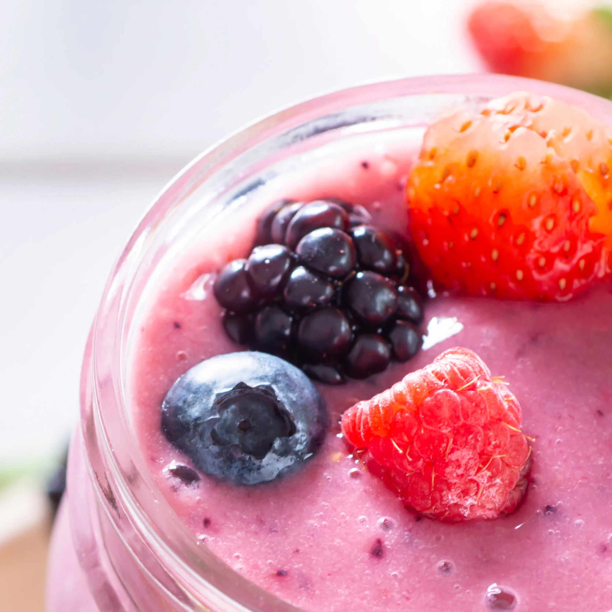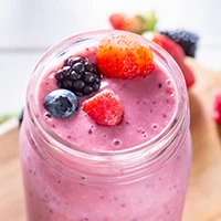 - En una licuadora, coloca la banana, las frutillas, el yogur y la creatina.